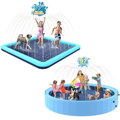 97'' Sprinkler Pool and 97'' Splash Pad, Non-Slip Sprinkler Pools for Kids and Heavy Duty, Splash Pad Pools for Backyard