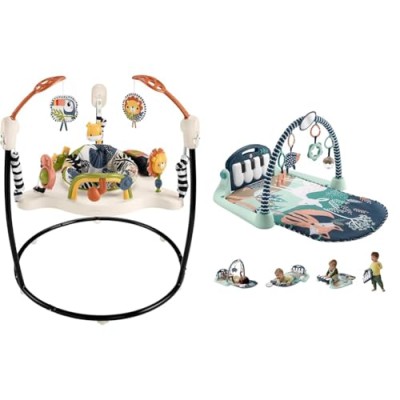 Baby Bouncer Palm Paradise Jumperoo Activity Center & Playmat Kick & Play Piano Gym with Musical and Sensory Toys for Newborn to
