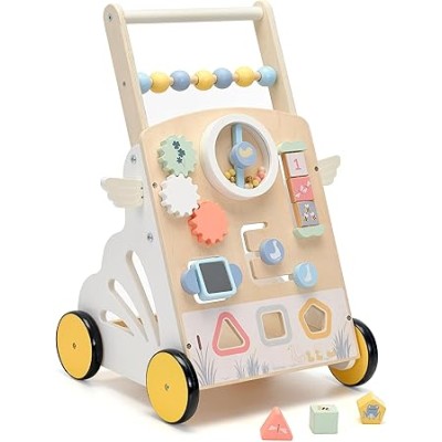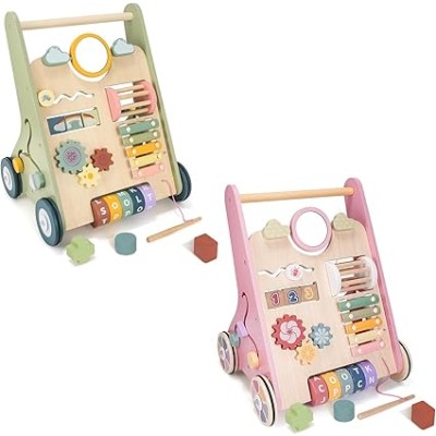 12-in-1 Wooden Baby Walker, Toddler Activity Center Toys, Wooden Baby Push and Pull Toys, Baby Push Walker, Multiple Play,