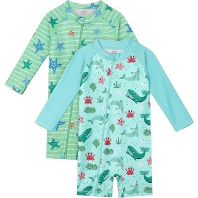 2 Pack Baby Toddler Boys Swimsuits UPF 50+ Sun Protection Long-Sleeve Rash Guards Baby Dry Fit Bathing Suit with Zip