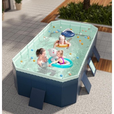 Foldable Large Rectangular Family Swimming Pool, Non-Inflatable, Easy Set-up, Suitable for Adults, Kids and Pet Dogs,Ideal for