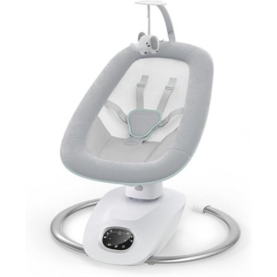 Electric Baby Swing for Infants to Toddler| Portable Infant Swing with Remote Control, Swing with 5 Speeds, 3-Point Harness for