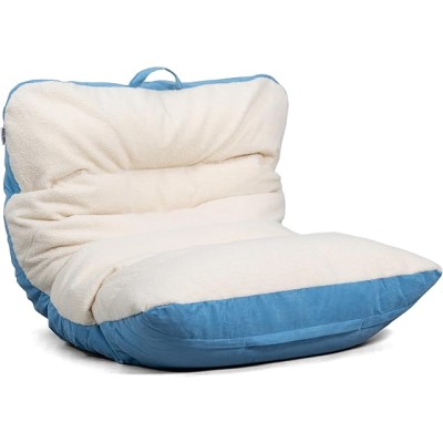 Roma Bean Bag Chair, Oat Sherpa and Dusty Blue, Vegan Suede, 3 feet