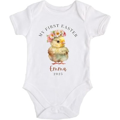 Personalized Name Custom Baby Bodysuit Cotton First Easter Outfit Newborn Baby Easter Announcement Baby Gifts Easter Chicken