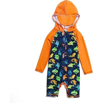 Baby Boy Hooded Sunsuits UPF 50+ Infant and Toddler Sun Protective One Piece Swimwear with Zipper.
