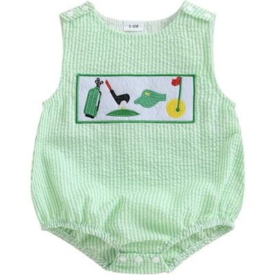 Summer Baby Clothes Newborn Boy Girl Smocked Bubble Romper Plaid Overall Infant Fishing Outfit