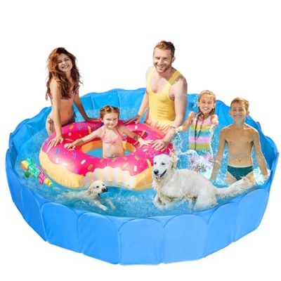 Extra Large Foldable Dog Pool for Large Dogs, 87" x16'' Non-Slip Pet Pool 5 Layers Protection Heavy Duty Steel & Oxford Fabric