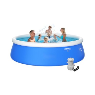 2025 Upgrade 12'*33" Round Inflatable Top Ring Above Ground Swimming Pool Fast Easy to Set Up Blow Up Pool Set with 530GPH