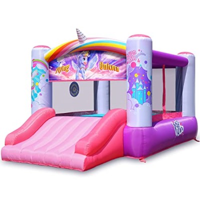 Bounce House, Princess Inflatable Bounce House with Blower, Pink Bouncy House for Girls, Flying Unicorn Theme Bouncy Castle,