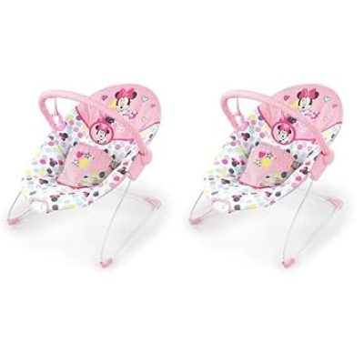 Disney Baby Minnie Mouse Vibrating Bouncer with Toy bar- Spotty Dotty (Pack of 2)