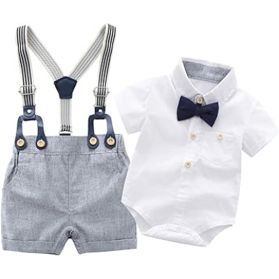 Baby Boys Gentleman Outfits Shorts Sets,Infant Shirt + Shorts + Bow Tie + Suspenders