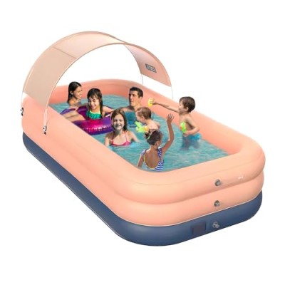9FT Inflatable Pool with Canopy and Built-in Air Pump for Kids and Adults, Large Family, Foldable Swimming Pool, Durable Above