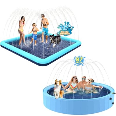 87'' Sprinkler Pool and 117'' Splash Pad, Non-Slip Sprinkler Pools for Kids and Heavy Duty, Splash Pad Pools for Backyard