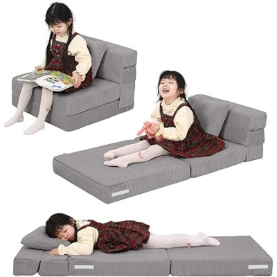 Folding Sofa Bed for Kids, Corduroy Fold Out Chair Bed Toddler Futon Chair, Small Foldable Floor Mattress for Girl Boy, Portable