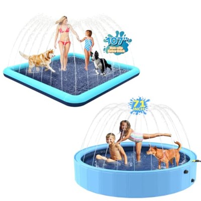 71'' Sprinkler Pool and 107'' Splash Pad, Non-Slip Sprinkler Pools for Kids and Heavy Duty, Splash Pad Pools for Backyard