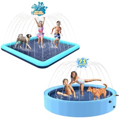 71'' Sprinkler Pool and 97'' Splash Pad, Non-Slip Sprinkler Pools for Kids and Heavy Duty, Splash Pad Pools for Backyard