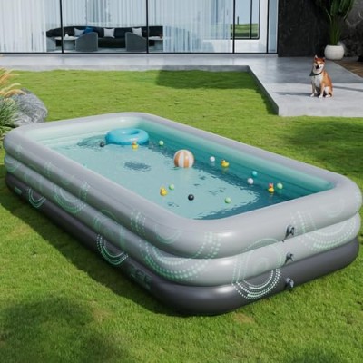 Foldable Swimming Pool, Oversized Family Pool for Adults Pet Dogs Inflatable-Free Rectangle Swimming Pool for Indoor, Outdoor,