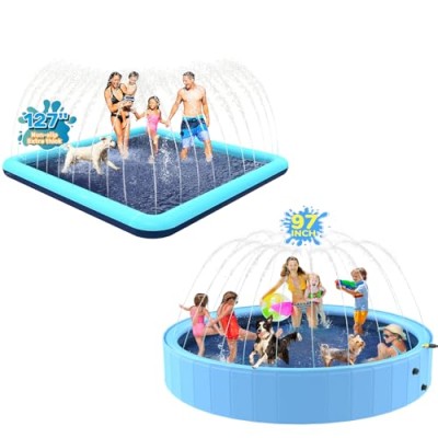 97'' Sprinkler Pool and 127'' Splash Pad, Non-Slip Sprinkler Pools for Kids and Heavy Duty, Splash Pad Pools for Backyard