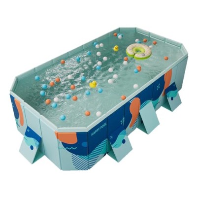 Foldable Pool Non-Inflatable Swimming Pool,Sturdy and Safe for Kids and Adults Outdoor Rectangle Swimming Pool Family Water