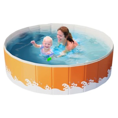 Foldable Large Rectangular Family Swimming Pool, Non-Inflatable, Easy Set-up, Suitable for Adults, Kids and Pet Dogs,Ideal for