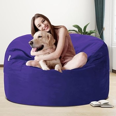 Bean Bag Chair 3FT with Ultra Soft Velvet Cover Memory Foam Bean Bag Large Size for Adults Lazy Sofa for Living Room Purple 3FT