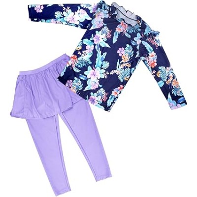 Baby Girls Two Piece Swimsuit Top and Pant UPF 50+ Sun Protection Long Sleeve Swimwear Bathing Suit