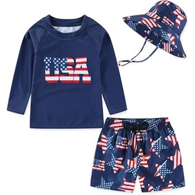 Toddlers Baby Boys' 3-Piece Rashguard Set Kids Bathing Suit Set with Hat UPF 50+